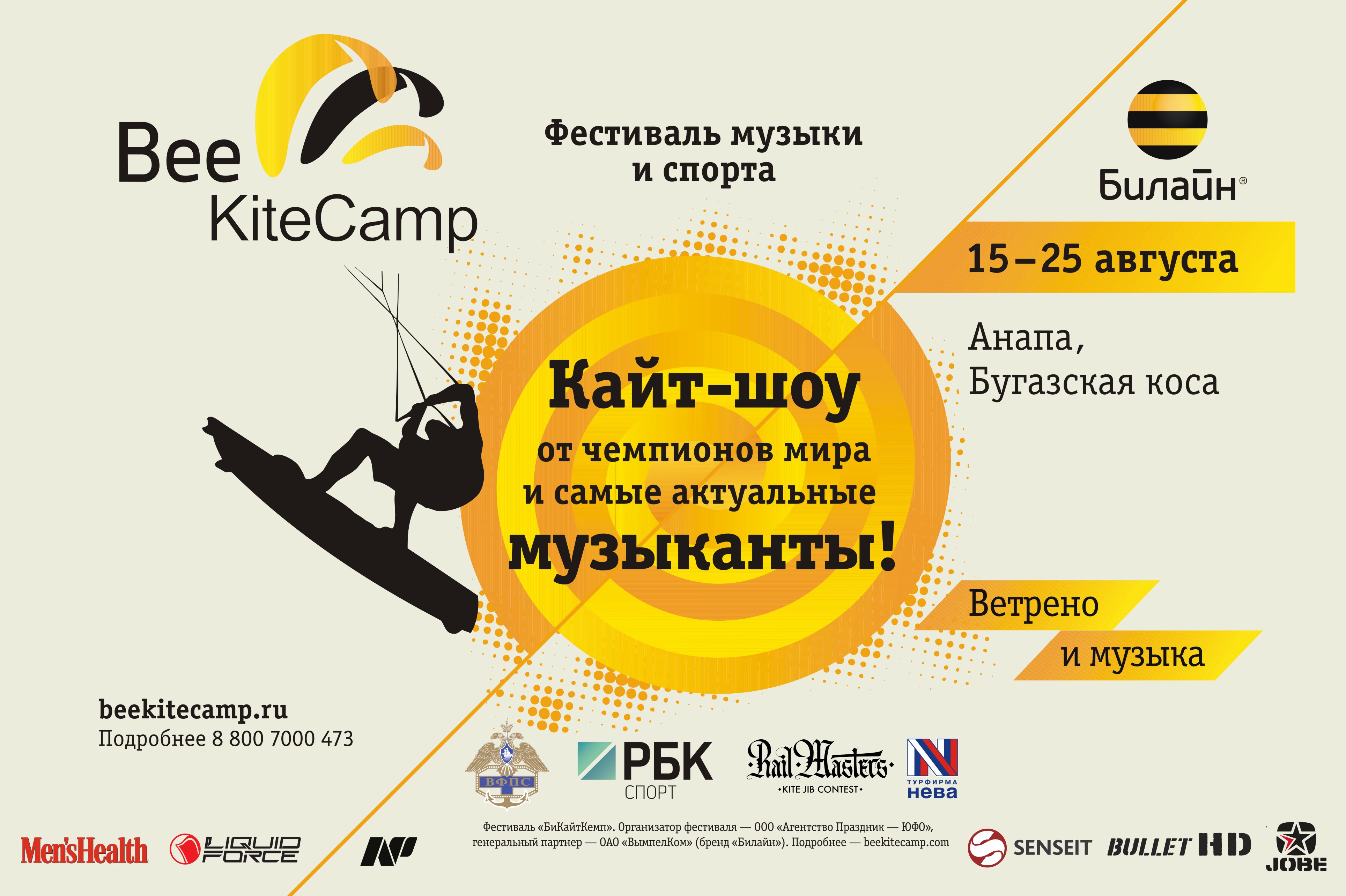 Фестиваль состоится на Бугазской косе в период с 15 по 25 августа при поддержке ОАО «ВымпелКом» (бренд «Билайн»), Турфирмы «НЕВА», Всероссийской Федерации Парусного Спорта и Федерации по виндсёрфингу и кайтсёрфингу России, и мультимедийного холдинга РБК. Гости фестиваля смогут погрузиться в мир свободного ветра, актуальной музыки и водного экстрима, и всё это в уникальной местности Бугазской косы!