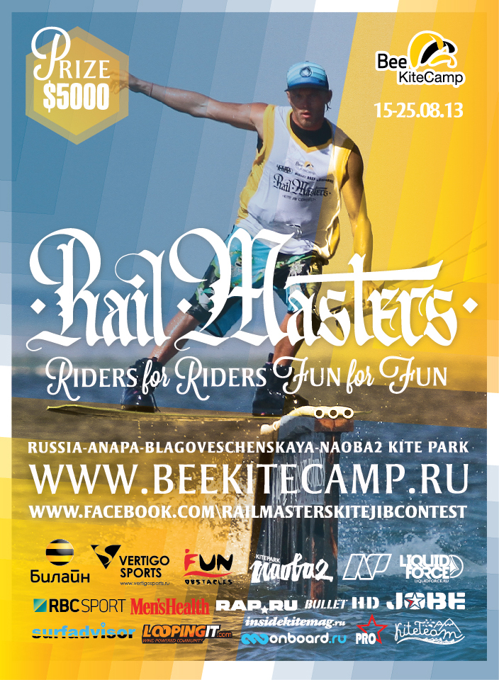 В летнем сезоне 2013 BeeKiteCamp / RAIL MASTERS обещает стать самым ярким и значимым событием в мире Российского кайтбординга. Подробности об истории кайт джиб контеста на официальном сайте Rail Masters .