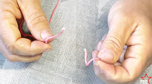 Прежде чем вдевать стропу даже в большое ушко, стоит распушить кончить, сделав его плоским и ровно обрезать.
