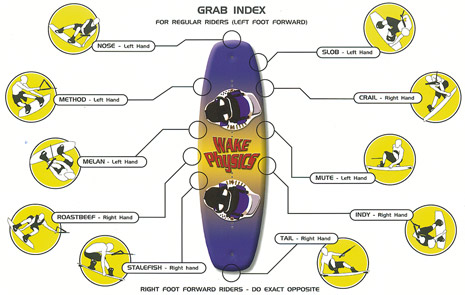 Grabs( захваты доски рукой ) – это то что действительно добавит стиль вашему катанию. Название захватов как и многое другое пришли из wakeboarding.
