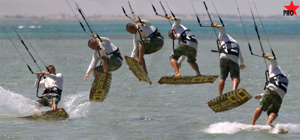 – На приземлении (после пика прыжка) отпускаем захват, и бедрами разворачиваем доску на 180 для приземления спиной к кайту (to blind). Разворачиваем сначала доску потом плечи.