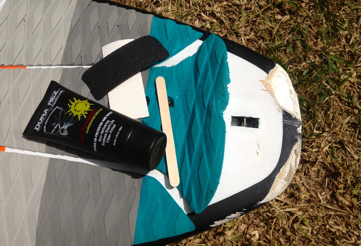 Для самостоятельного ремонта корпуса серфборда Вам потребуется эпоксидка, которую можно найти в специализированных магазинах. На Маврикии, например, я использую Dura Rez от Phix Doctor за 12 евро в ближайшем серфшопе.
