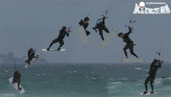 Возможно, по причине сильного ветра и быстрого кайта малого размера, или все же на будущий год действительно будет сильно цениться высота прыжка, парни тренировали KLHP, при котором первая часть с вращением кайта была на трапеции, что позволяло высоко вылететь и контролируемо прокрутить кайт, взявшись обеими руками за край планки. Когда кайт завершил вращение и пошел вверх, поменять хват, поставив заднюю руку по середине, и, снявшись с трапеции, делали перехват.