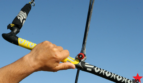 Итак: одевание доски начинается с того, что вам потребуется остановить кайт в нужном вам месте. Если доску вы будете держать в правой руке, то кайт, чтобы обеспечить прижатие к доске, также находится справа, позволяя управлять кайтом левой рукой. Для лучшего контроля левую руку расположите на планке ближе к середине и большой палец вытяните вдоль планки. При таком хвате вы сможете избежать поворота планки при управлении.